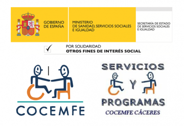 • Servicios y Programas COCEMFE-CÁCERES, ejecuta este proyecto gracias a la solidaridad de los contribuyentes que marcaron la casilla de Actividades de Interés general consideradas de interés social en su declaración de la renta