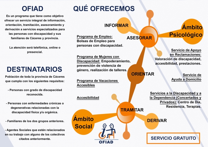 Es un programa que tiene como objetivo ofrecer un servicio integral de información, orientación, tramitación, asesoramiento y derivación a servicios especializados para las personas con discapacidad y sus familiares de Cáceres y provincia.