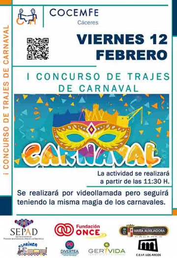 - El próximo viernes 12 de febrero a partir de las 11:30 h. tendrá lugar el I Concurso de Trajes de Carnaval COCEMFE CÁCERES.