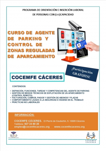 Ambas circunstancias han motivado a COCEMFE CÁCERES a realizar nuevamente esta formación, aunque en esta edición el curso también formará al alumnado en acciones de vigilancia o control de zonas reguladas de aparcamiento (zona azul).
