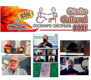 El pasado 5 de noviembre finalizó el IX Festival Otoño Cultural de COCEMFE CÁCERES, uno de los "pilares fundamentales" de las actividades del proyecto Red de Capacidades. Que nuevamente no se han podido realizar las actividades presenciales debido a la situación actual de COVID-19, y, por lo tanto, se han realizado vía online con la colaboración de SentirCaceres TV, y la página web y redes sociales de la entidad.